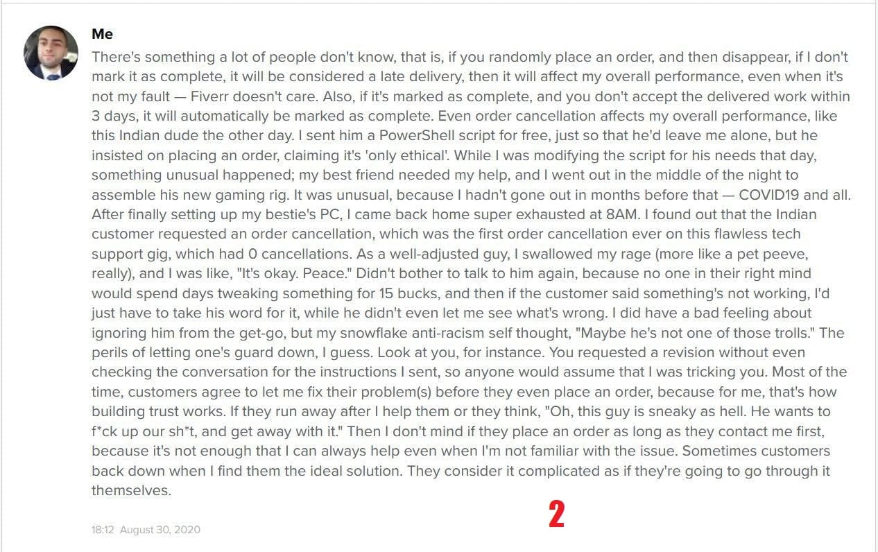These assholes pretend to know a lot about empathy, and shit, but the truth is, they’re just like that bitch who called the cops on a kid for selling water. I knew Fiverr was gonna side with her, and I’m just too proud to apologize to a worthless bitch or to a mediocre freelancing marketplace, so I remember lashing out at Fiverr support, too, saying shit like, “You, and the Pakistani, Bangladeshi, Indian, and Nepali scammers really deserve each other.”